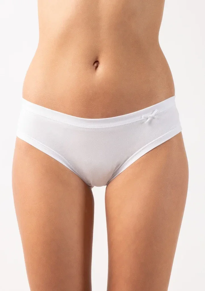 Dámská tanga od značky Lovelygir. Přední díl je hladký, ozdoben drobnou mašlí. Zadní díl je tvořen jemnou krajkou.