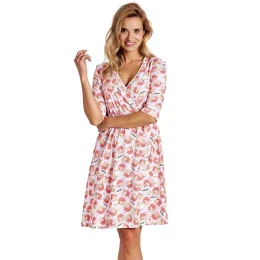 Dámská těhotenská košile 3141 TARO - bílá barva - z vysoce kvalitní bavlny - s krátkými rukávy - s potiskem - pod poprsím všitá guma - zapínání na knoflíky - délka ke kolenům