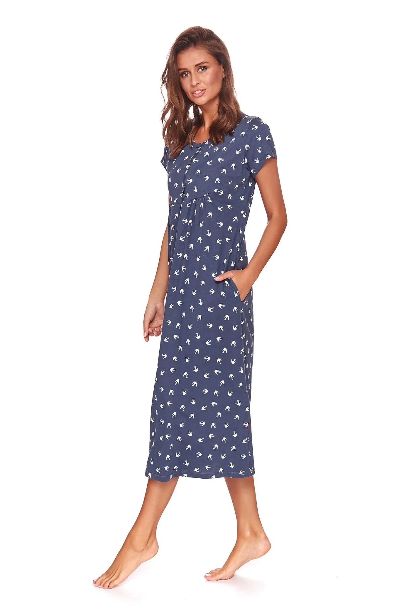 Dámská těhotenská košile 4119 blue plus Doctornap - světle modrá barva - z vysoce jakostní bavlny - s krátkými rukávy - zdobená potiskem - zapínání na patentky - na bocích kapsy - ideální pro těhotné a kojící ženy - certifikát OEKO-TEX Standard 100