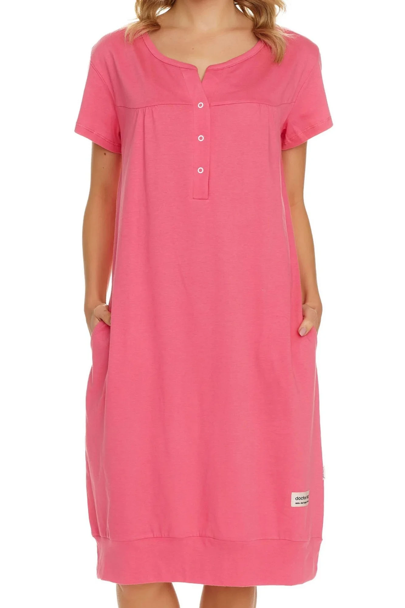 Dámská těhotenská košile 4348 coral Doctornap - korálová barva - z vysoce jakostní bavlny - s krátkými rukávy - zapínání na patentky - na bocích kapsy - ideální pro těhotné a kojící ženy - certifikát OEKO-TEX Standard 100
