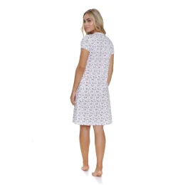 Dámská těhotenská košile 5335 Doctornap - bílá barva - z vysoce jakostní bavlny - se vzorem - krátké rukávy - zapínání na patentky - ozdobné řasení - na bocích kapsy - ideální pro těhotné a kojící - hypoalergenní - certifikát OEKO-TEX Standart 100