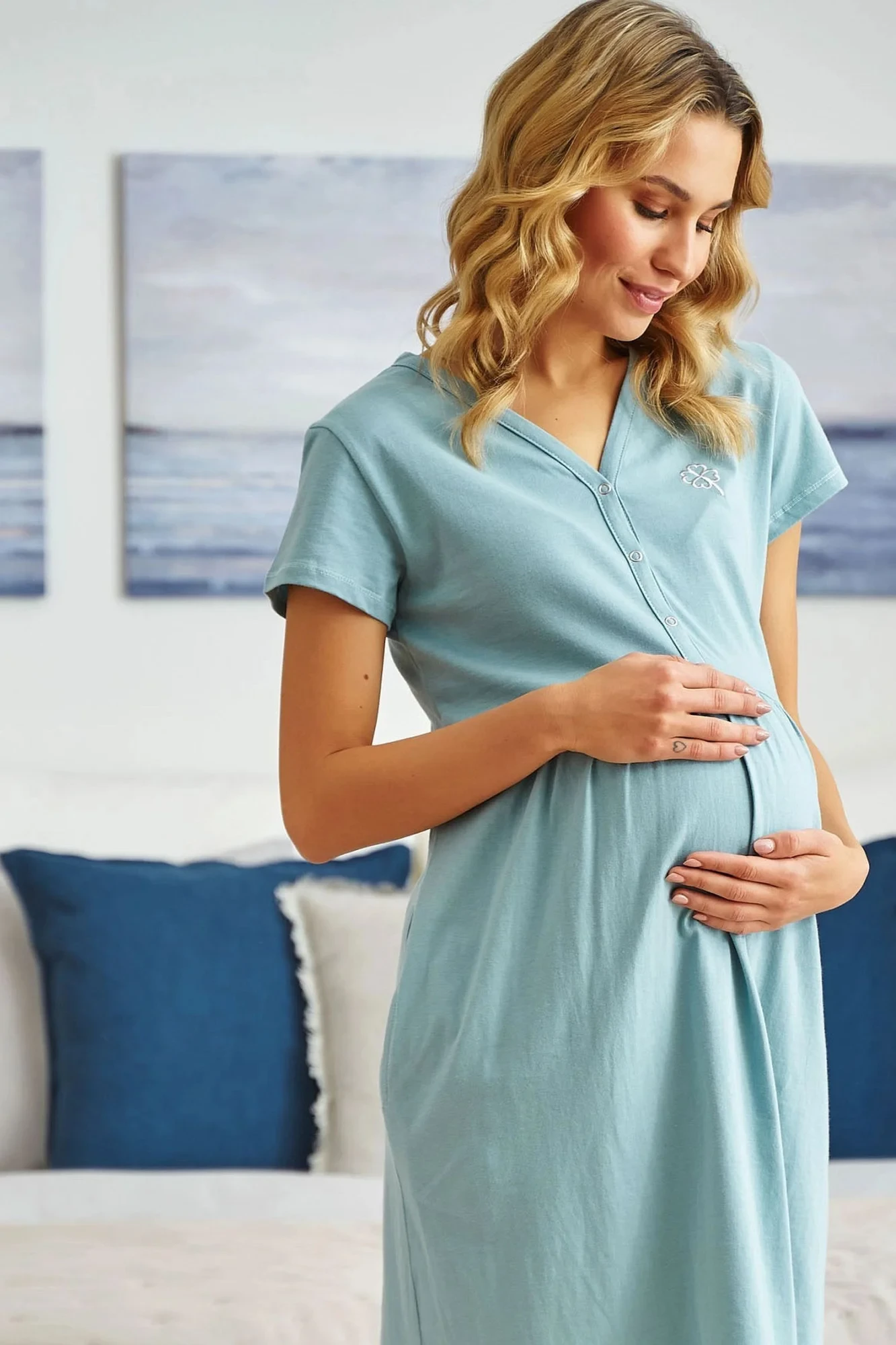 Produkt Dámská těhotenská košile 5336 - Doctornap prodáváme v těchto velikostech: S, XXL, XLa barvách světle modrá5902701191306, 5902701195069, 5902701191337