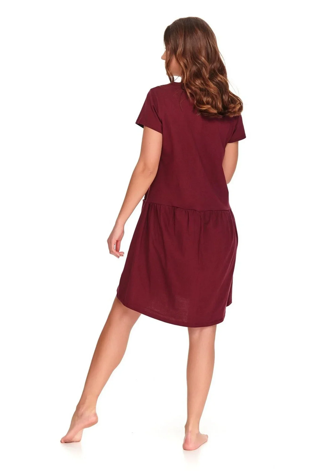 Dámská těhotenská košile 9445 wine Doctornap - bordó barva - z vysoce jakostní bavlny - s krátkými rukávy - zapínání na patentky - s kapsami - ideální pro těhotné a kojící ženyMateriálové složení: 100% bavlna