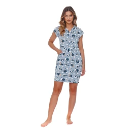 Dámská těhotenská košile 9453 Doctornap - světle modrá barva - z vysoce jakostní bavlny - s krátkými rukávy - se vzorem - na bocích kapsy - ideální pro těhotné a kojící ženy - hypoalergenní vlastnosti - certifikát OEKO-TEX Standard 100