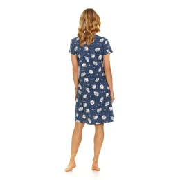 Dámská těhotenská košile 9930 dark blue Doctornap - tmavě modrá barva - z vysoce jakostní bavlny - se vzorem - výstřih se zapínáním - krátké rukávy - kapsy na bocích - ideální pro těhotné a kojící - hypoalergenní - certifikát OEKO-TEX Standart 100