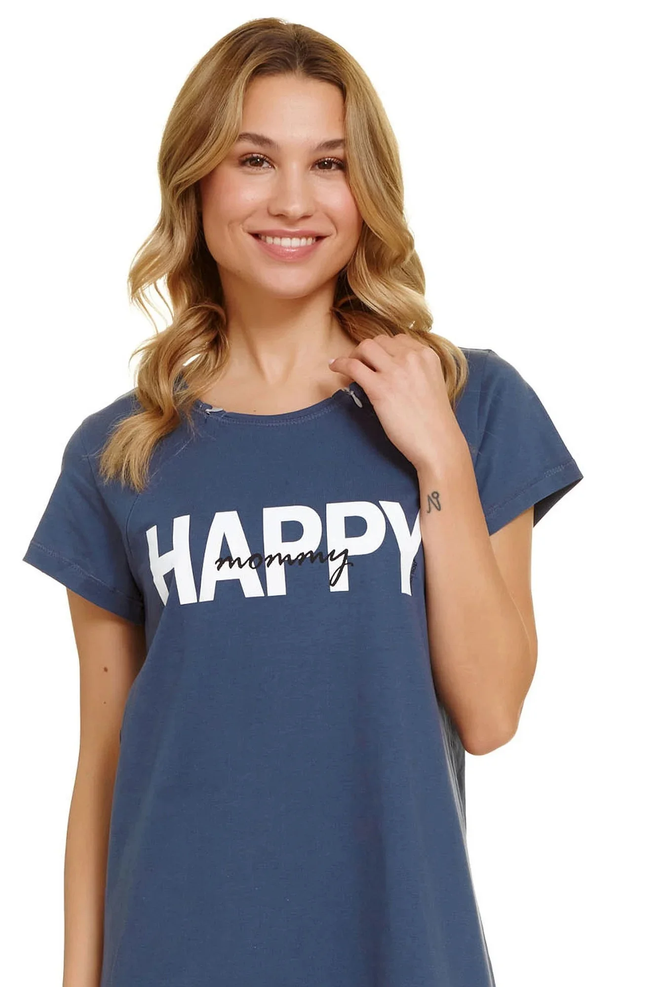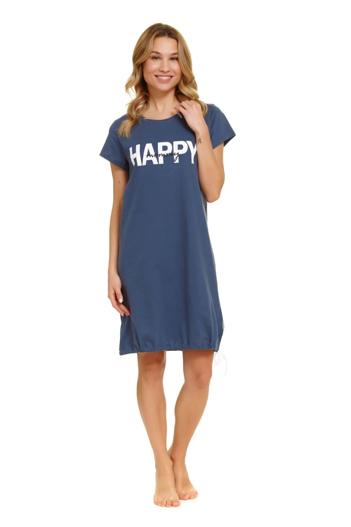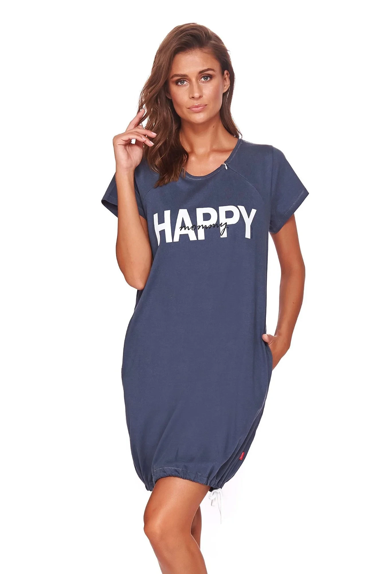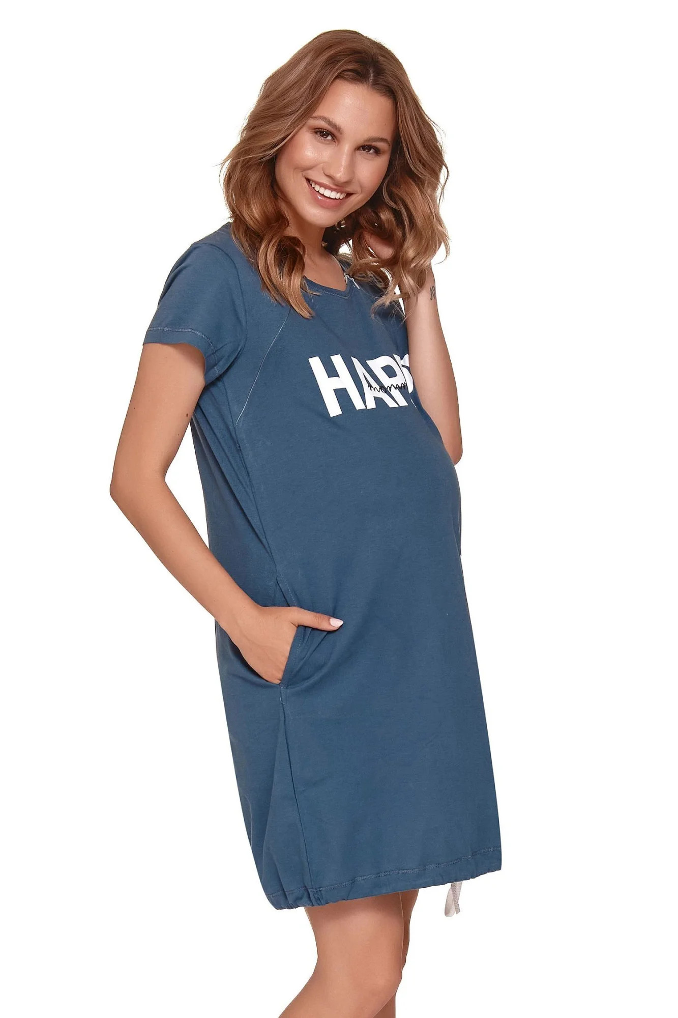 Dámská těhotenská košile 9504 deep blue Doctornap - tmavě modrá barva - z vysoce jakostní bavlny - s krátkými rukávy - zdobená potiskem na přední straně - na bocích kapsy - ideální pro těhotné a kojící ženy - hypoalergenní vlastnosti - certifikát OEKO-TEX Standard 100