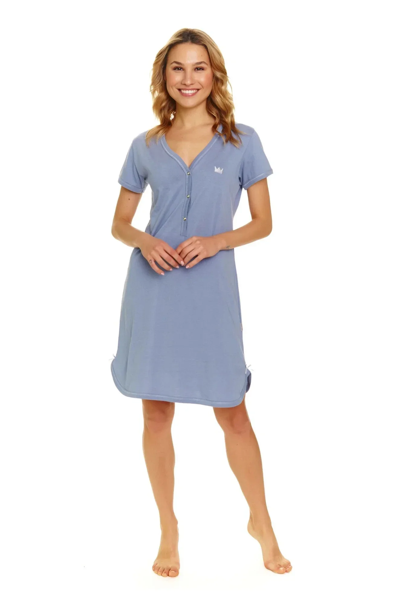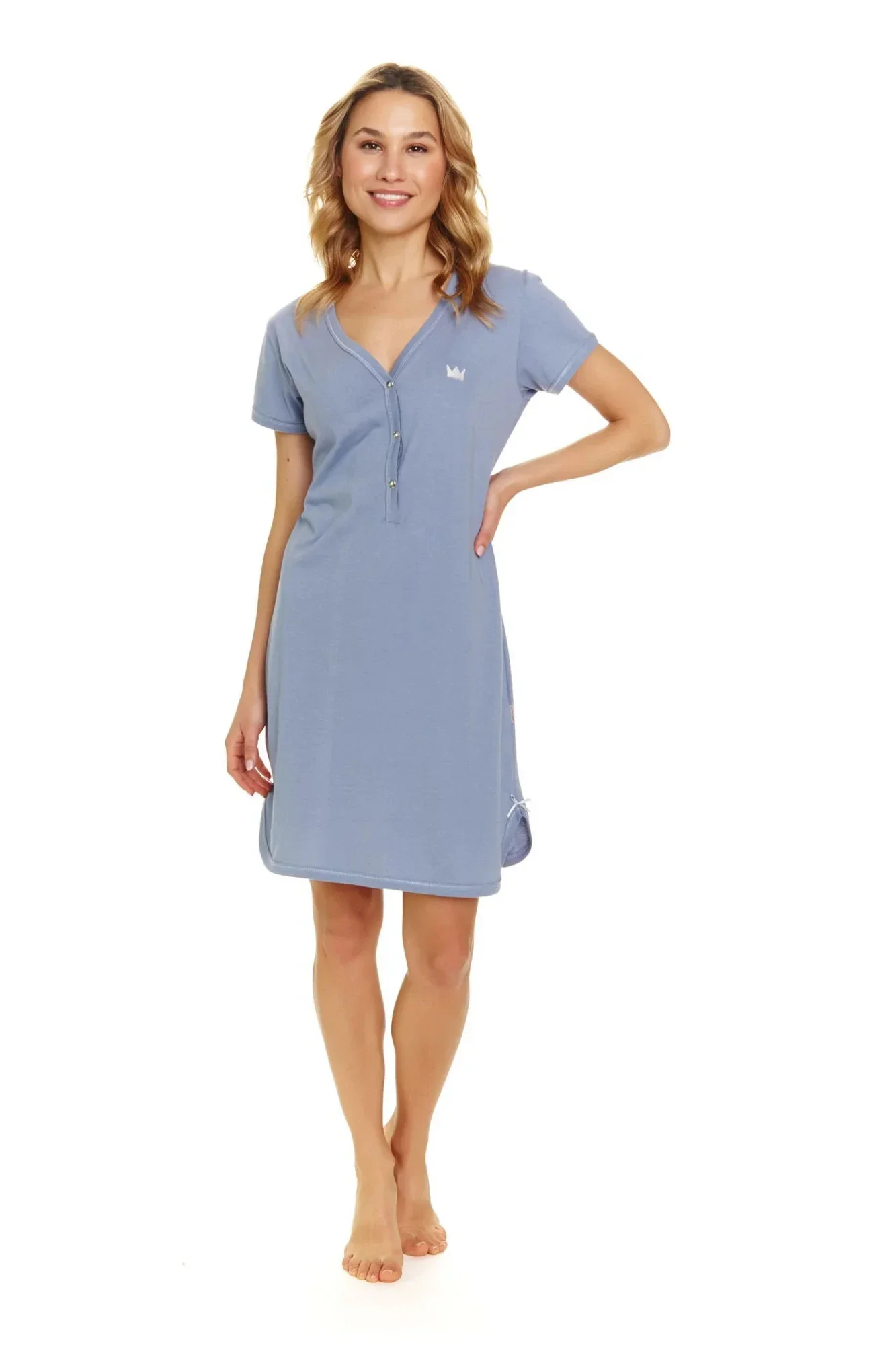 Dámská těhotenská košile 9505 sky blue Doctornap - světle modrá barva - z vysoce jakostní bavlny - s krátkými rukávy - zapínání na druky - ideální pro těhotné a kojící - hypoalergenní