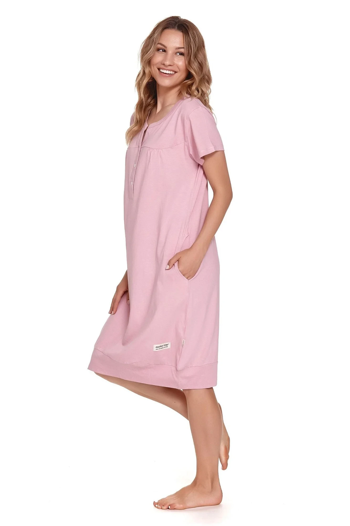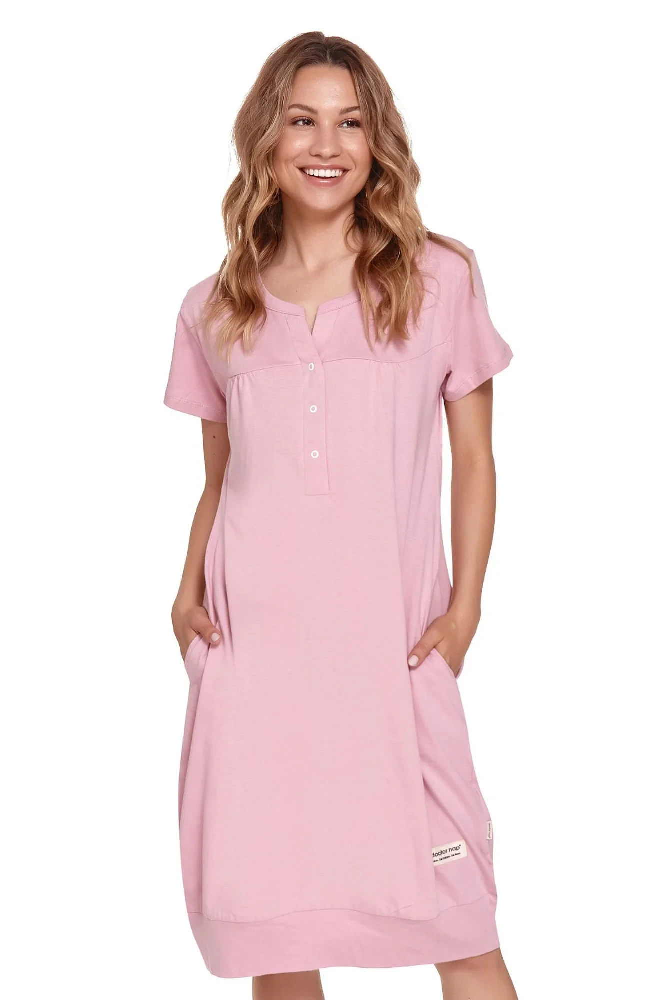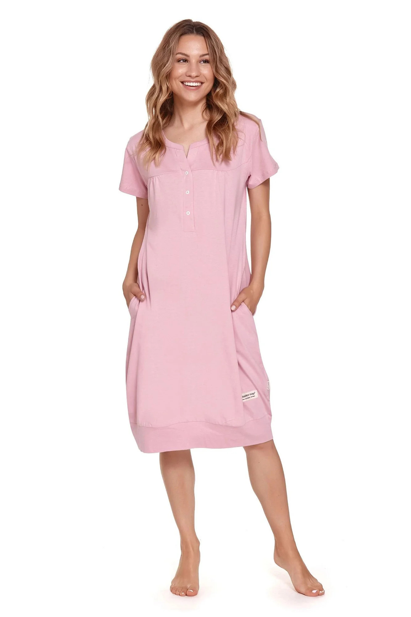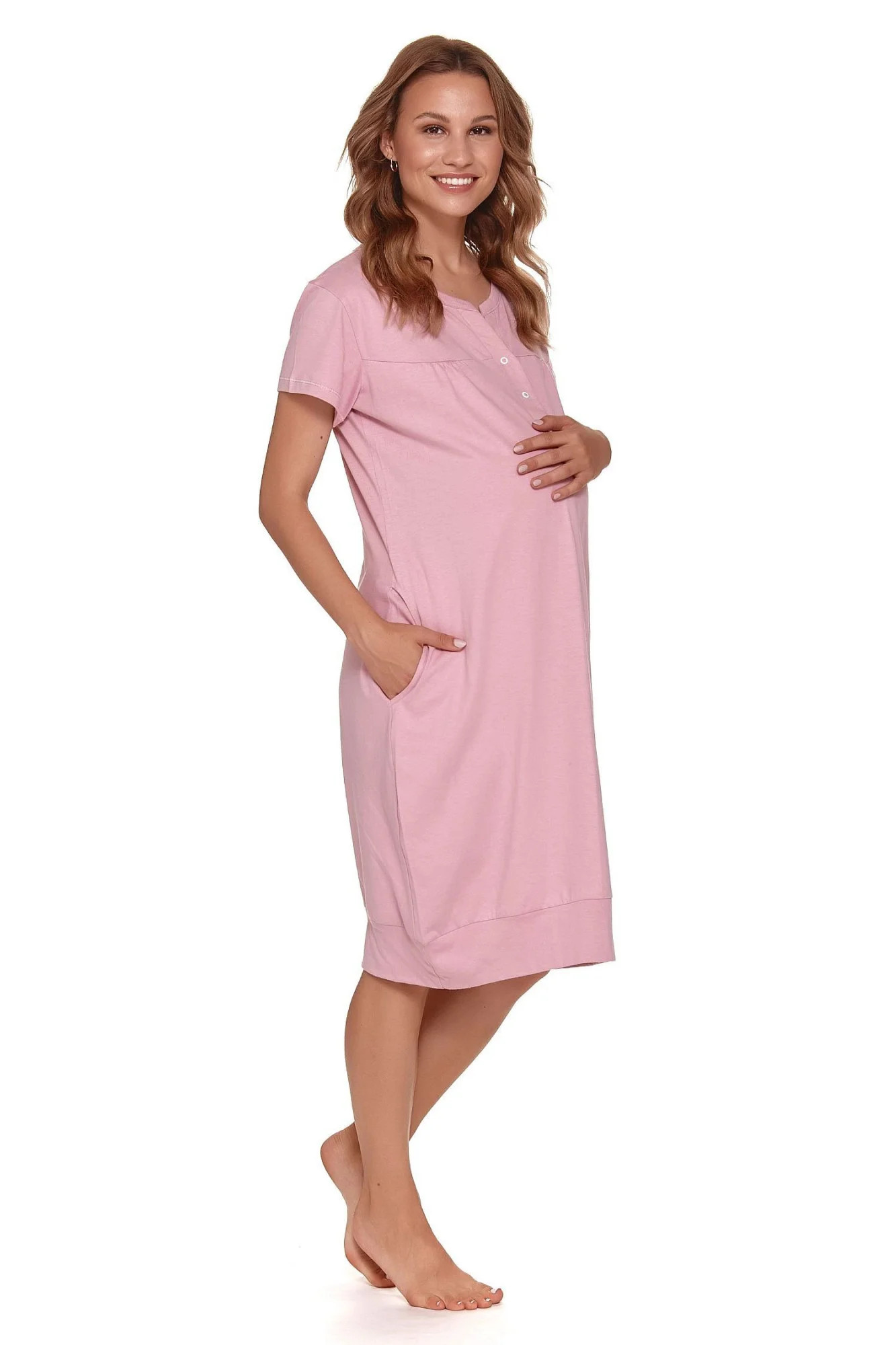 Dámská těhotenská košile 4348 violet Doctornap - světle fialová barva - z vysoce jakostní bavlny - s krátkými rukávy - zapínání na patentky - na bocích kapsy - ideální pro těhotné a kojící ženy - certifikát OEKO-TEX Standard 100