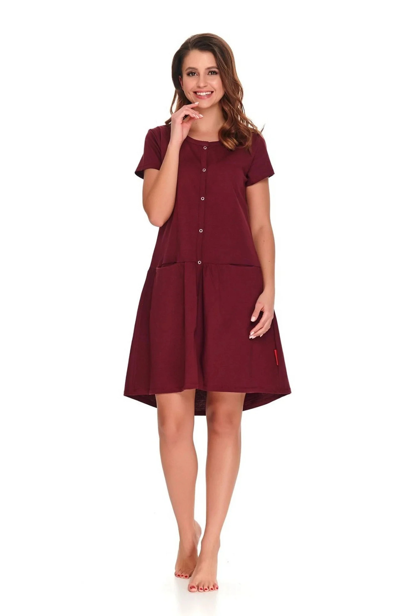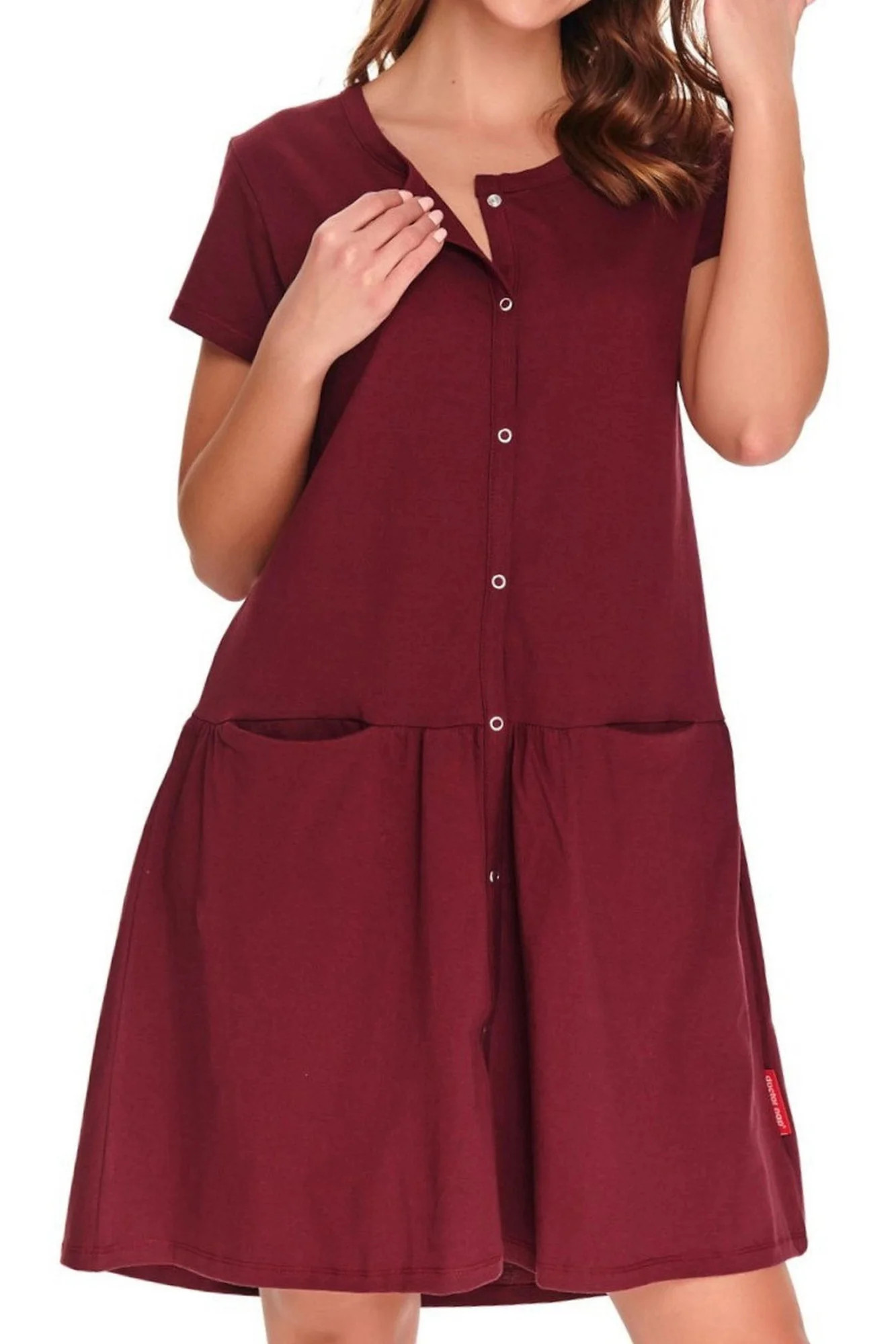 Dámská těhotenská košile 9445 wine Doctornap - bordó barva - z vysoce jakostní bavlny - s krátkými rukávy - zapínání na patentky - s kapsami - ideální pro těhotné a kojící ženy