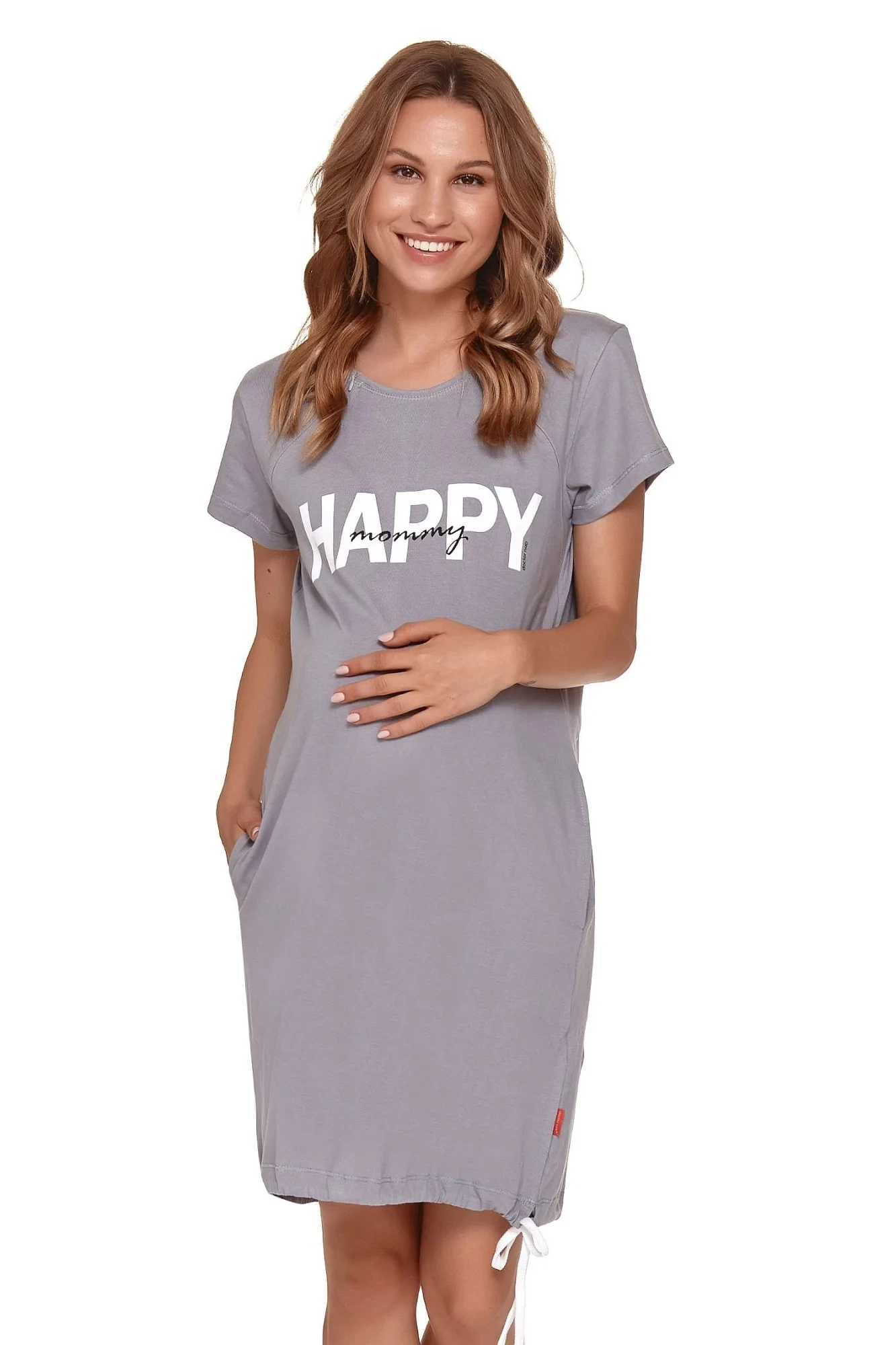 Dámská těhotenská košile 9504 grey Doctornap - šedá barva - z vysoce jakostní bavlny - s krátkými rukávy - zdobená potiskem na přední straně - na bocích kapsy - ideální pro těhotné a kojící ženy - hypoalergenní vlastnosti - certifikát OEKO-TEX Standard 100