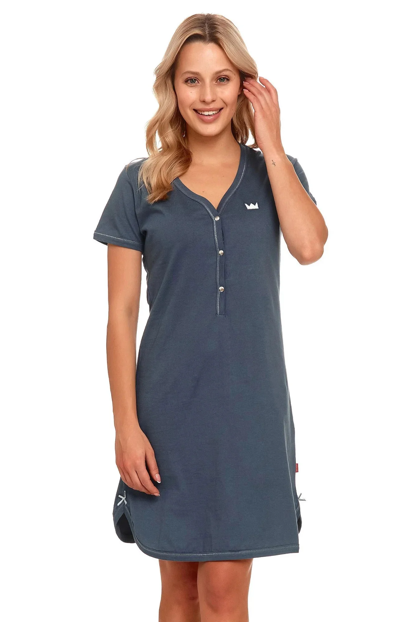 Dámská těhotenská košile 9505 blue plus Doctornap - tmavě modrá barva - z vysoce jakostní bavlny - s krátkými rukávy - zapínání na druky - ideální pro těhotné a kojící - hypoalergenní