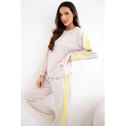 Dámská tepláková souprava Masełko s lampasy a volnou mikinou béžová