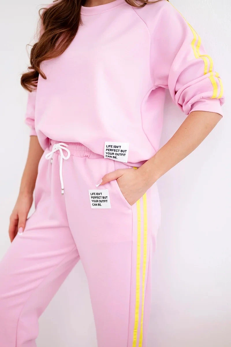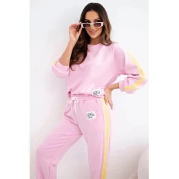 Dámská tepláková souprava Masełko s lampasy a volnou mikinou cukrově růžová