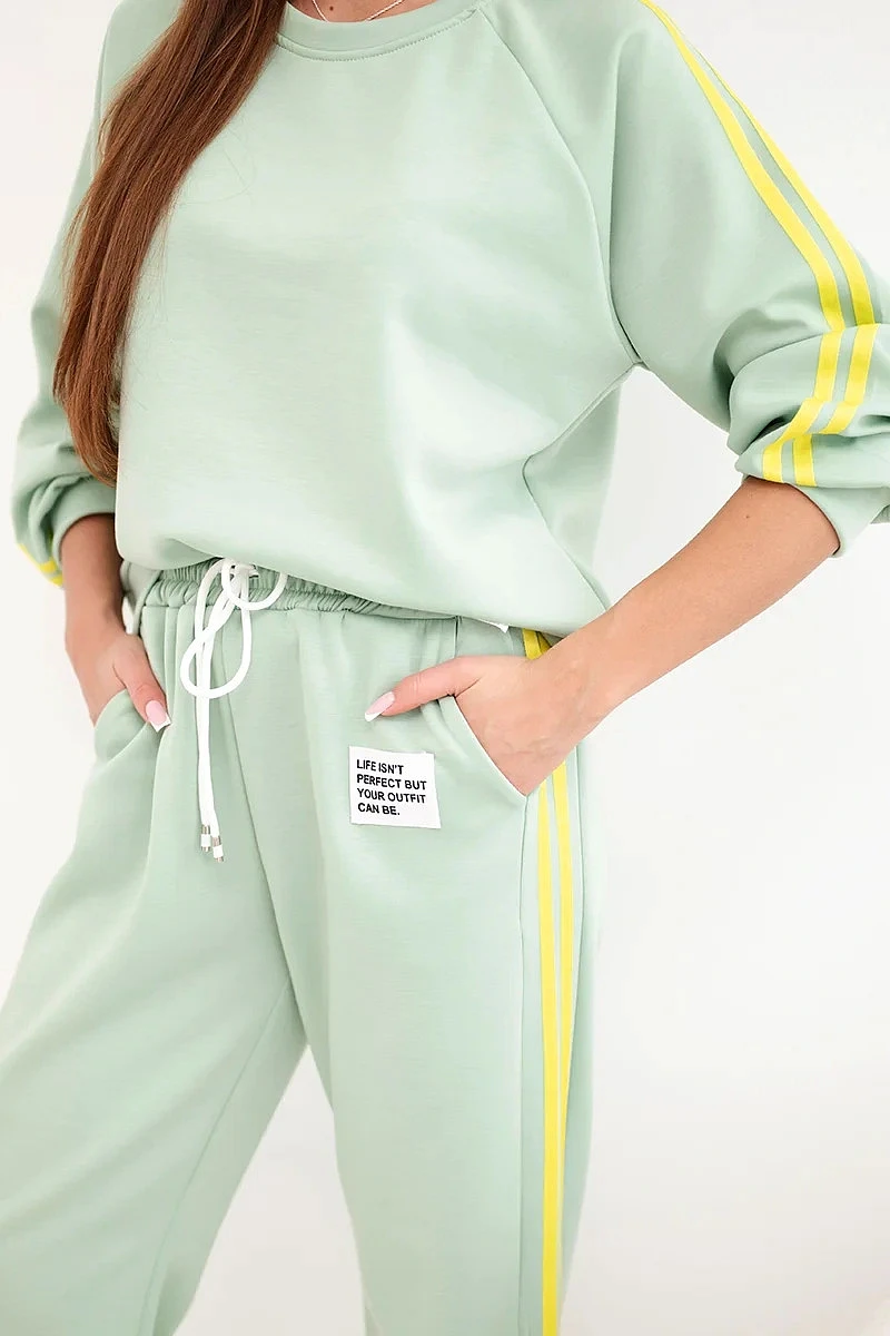 Dámská tepláková souprava Masełko s lampasy a volnou mikinou tmavě mátová