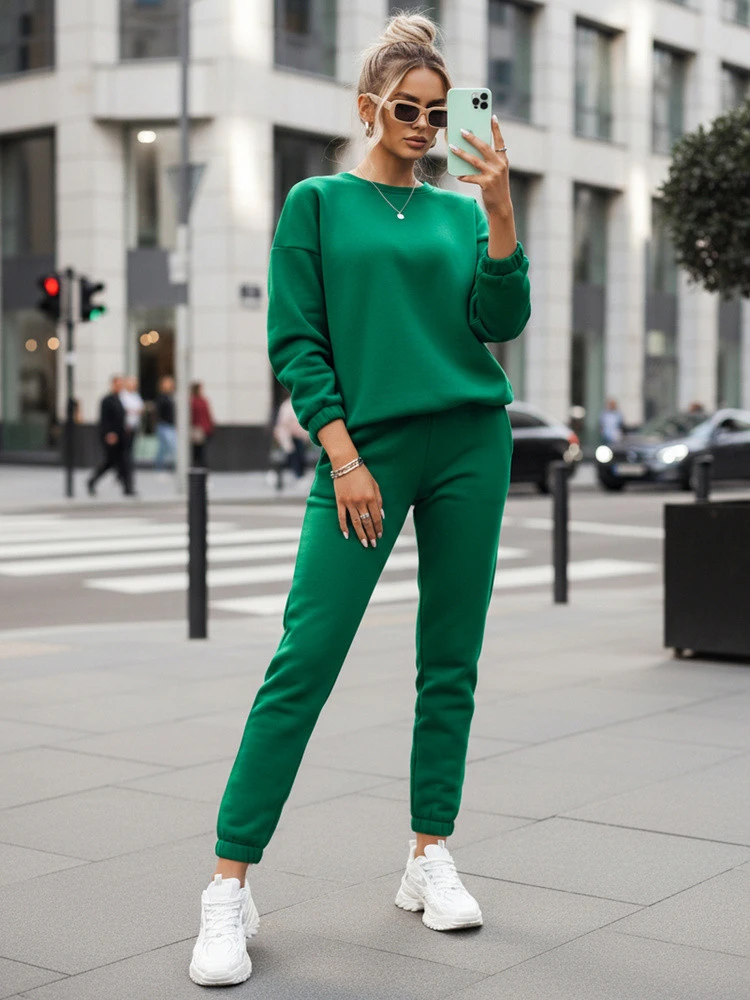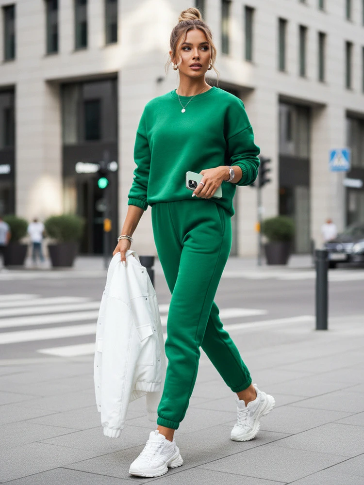 Mikinová souprava se dobře hodí k teniskám a sportovním doplňkům a vytváří pohodlný komplet na procházky, nákupy nebo cestování. Mikinu lze nosit samostatně s džínami a kalhoty s jednoduchým tričkem, čímž se rozšíří možnosti stylingu. Ležérní charakter soupravy se dobře hodí pro každodenní městský styl.
