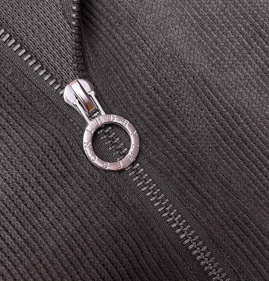 Mikina má dvě kapsy a zapíná se zipem. Na koncích rukávů a na spodním okraji modelu jsou stahovací lemy. Model má délku do pasu.
