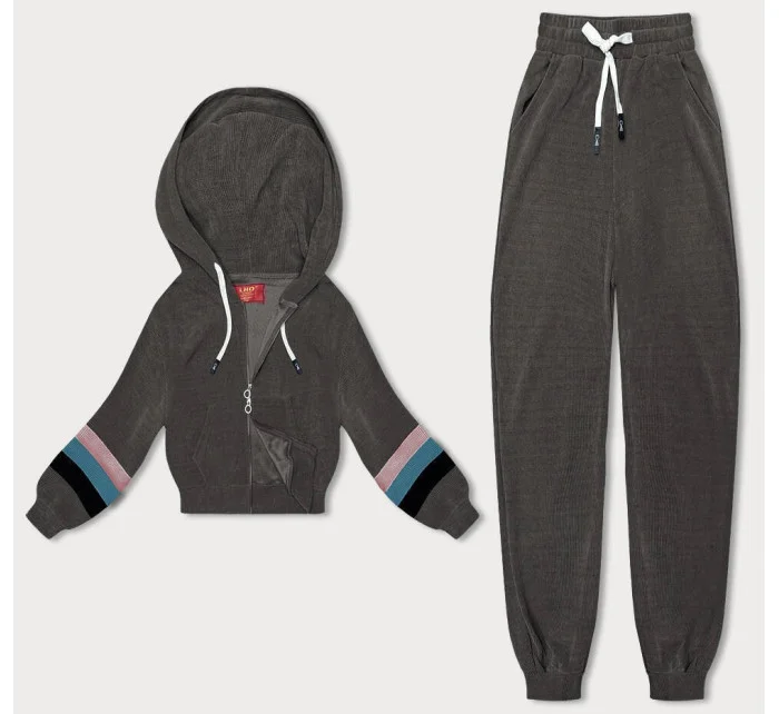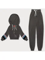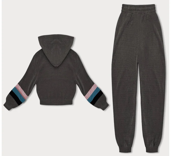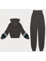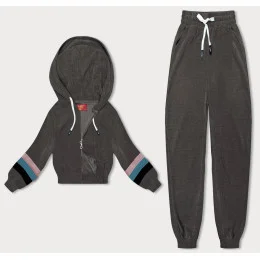 Dámská tepláková souprava v grafitové barvě s barevnými vsadkami (AMG-346A)