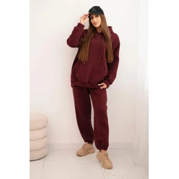 Dámská tepláková souprava zateplená z bavlny s kapucí bordová