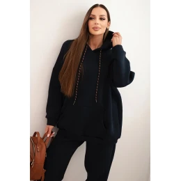 Pohodlný dámský teplákový komplet vyrobený z příjemné na dotek bavlněné pleteniny je ideální nabídkou na každodenní stylizace. Mikina s prostornou kapucí, nastavitelnými šňůrkami a klasickou klokankou zajišťuje komfort a volnost nošení. Kalhoty s elastickým pasem a stahovacími manžetami se dokonale přizpůsobují siluetě a zaručují pohodlí po celý den.