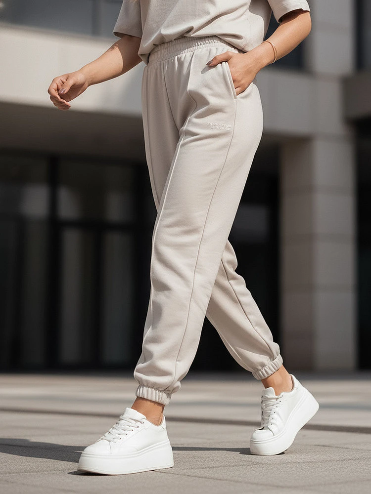 Souprava ZIMELAN v sobě spojuje ležérnost a sofistikovanost. Tričko s kulatým výstřihem a atraktivním potiskem je synonymem městského stylu, zatímco joggerové kalhoty se dvěma kapsami jsou vrcholem pohodlí. Vytvořeno pro nošení doma i při městských toulkách.
