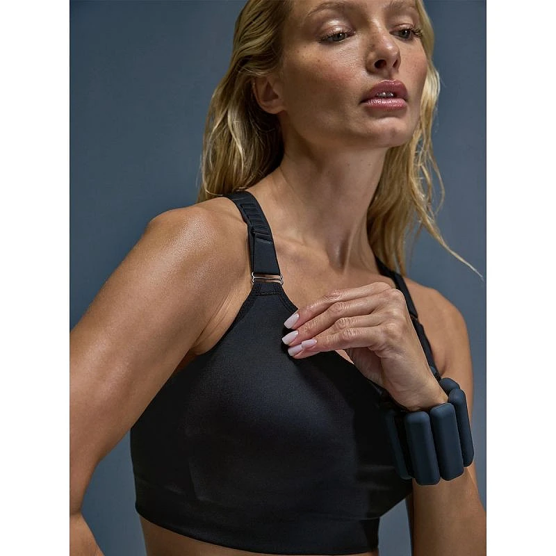Formowane, półusztywniane miseczki zintegrowane z konstrukcją pomagają ograniczyć przesuwanie i zwiększają komfort noszenia. Ramiączka z wielostopniową regulacją na haczyk umożliwiają precyzyjne dopasowanie, a dół pod biustem z 3-stopniową regulacją na haftki pozwala lepiej dostosować obwód do sylwetki. To funkcjonalny model dla kobiet, które oczekują wsparcia i wygody bez rozpraszania podczas treningu.