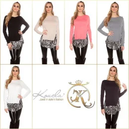 Dámská svetrová tunika 2v1 6544 Tmavě modrá s ecru - Koucla
