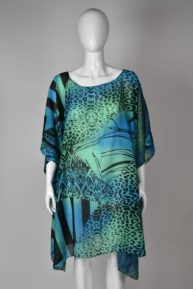 Dámská letní tunika - pareo, která je vyrobená ze vzdušné vzorované tkaniny.