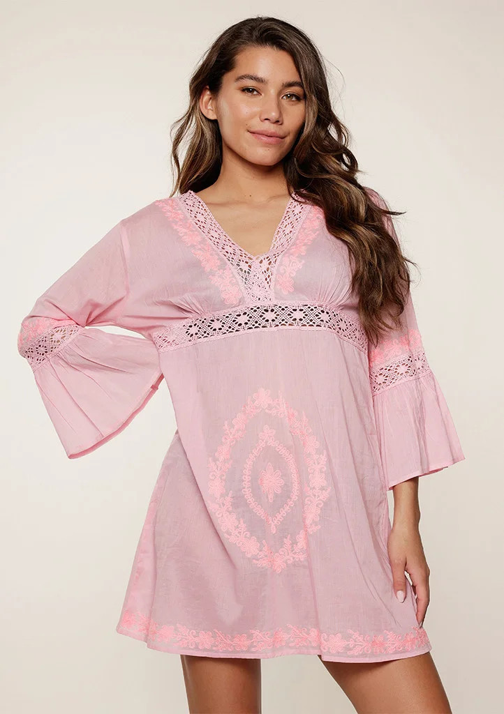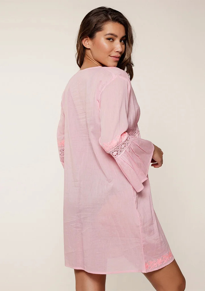 Tunika značky LingaDore je perfektní volbou pro pohodový a stylový look. Tento boho model je vyrobený ze 100% bavlny, což zajišťuje příjemný komfort po celý den. Má V-výstřih a rozšířené rukávy, které jí dodávají lehkost a vzdušnost. Detaily v prošívání podtrhují její jedinečný design. Tunika je ideální jako lehké šaty přes plavky, což ji činí skvělou volbou pro relaxaci u vody, na pláži nebo u bazénu. Díky své univerzálnosti je také perfektní pro barevný, casual look v teplých letních dnech.
