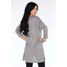 Pletená tunika s rozparky po bocích, délku rozparku lze nastavit díky všitým zipům.