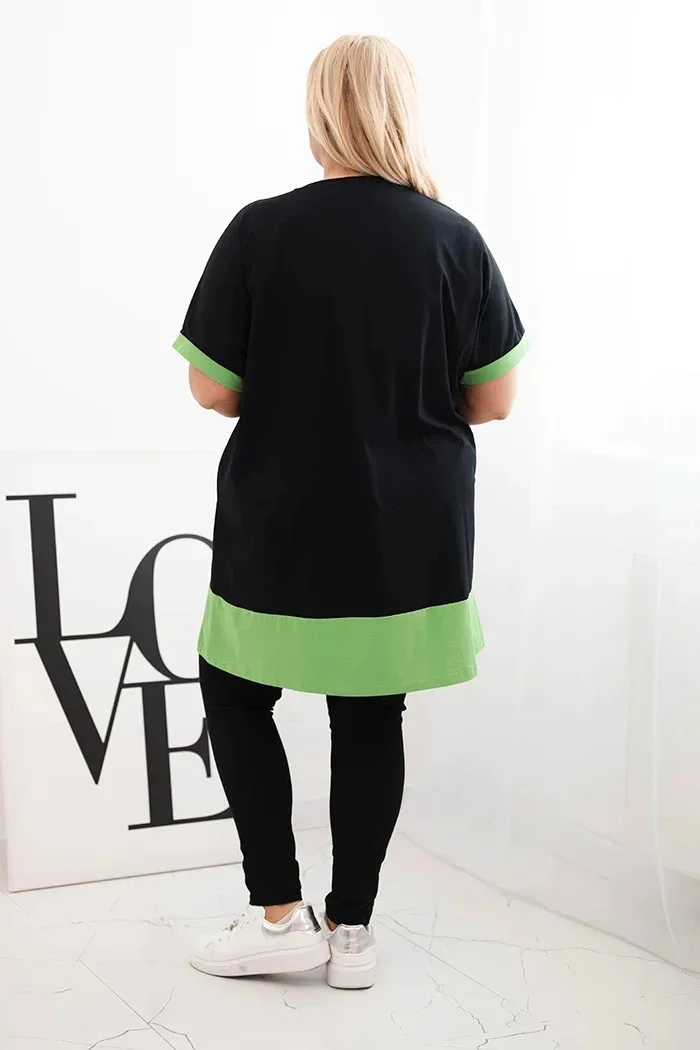 Pokud si ceníte kombinace ženského stylu a pohodlí, tato dámská tunika Plus Size splní Vaše očekávání! Model s volným střihem z příjemné bavlny s příměsí elastanu zajišťuje celodenní komfort. Květinový vzor zdobený perličkami dodává eleganci a kontrastní zakončení rukávů a spodního lemu tuniku odlišuje od ostatních modelů. Skvělá pro každodenní nošení, ale také vhodná pro slavnostnější příležitosti. Ideální pro ženy, které hledají stylová řešení ve velikosti Plus Size.