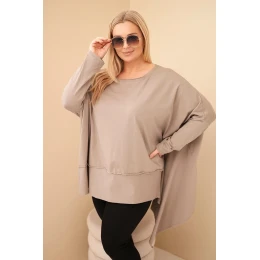 Tato dámská tunika Plus Size z bavlny je skvělou volbou pro ženy, které mají rády volnost, pohodlí a módní, moderní střih. Vyrobena z měkké, elastické bavlny, zaručuje pohodlí po celý den. Velmi volný střih a silně asymetrický spodek vytvářejí jedinečný efekt oversize, který se krásně přizpůsobí postavě a dokonale zakryje všechny nedokonalosti. Model skvěle funguje v každodenních stylizacích — s legínami, přiléhavými kalhotami nebo džíny.