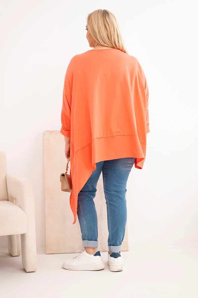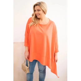 Dámská tunika Plus Size z bavlny s asymetrickým spodním lemem meruňková