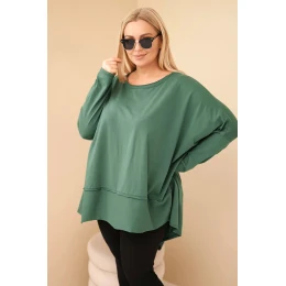 Dámská tunika Plus Size z bavlny s asymetrickým spodním lemem tmavě zelená