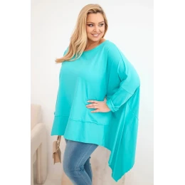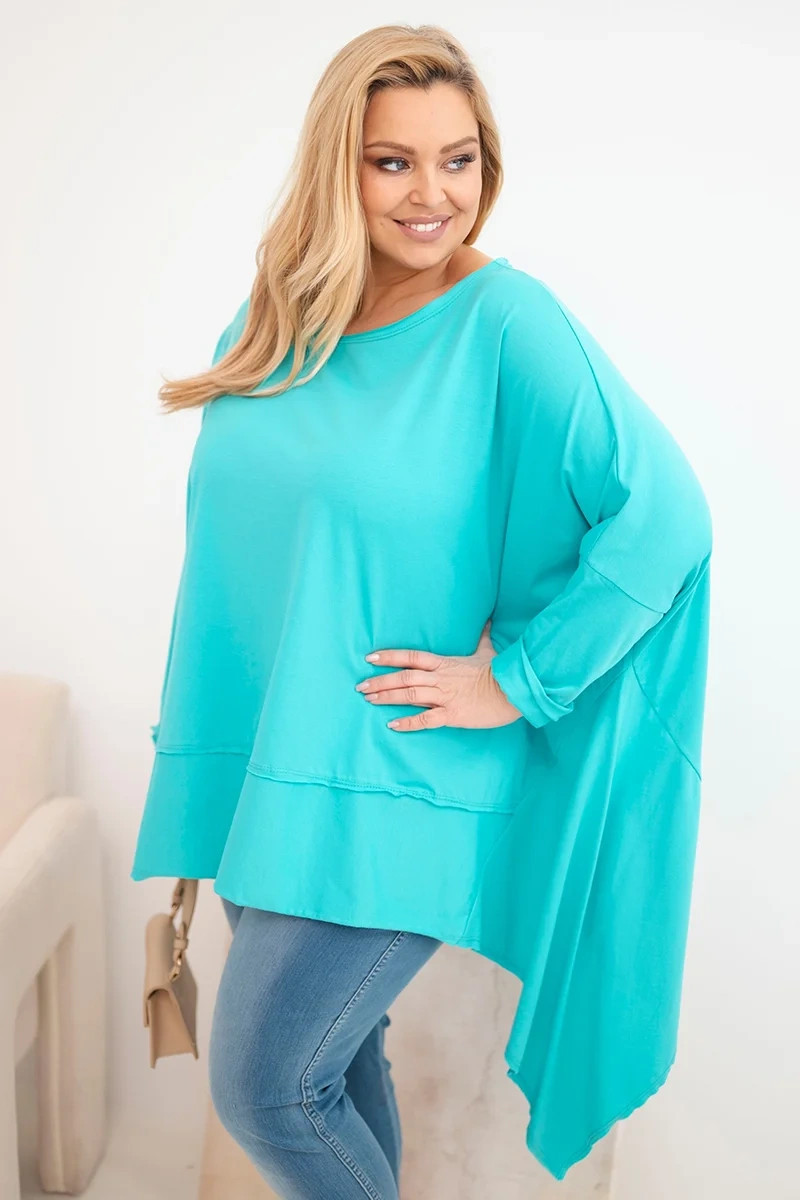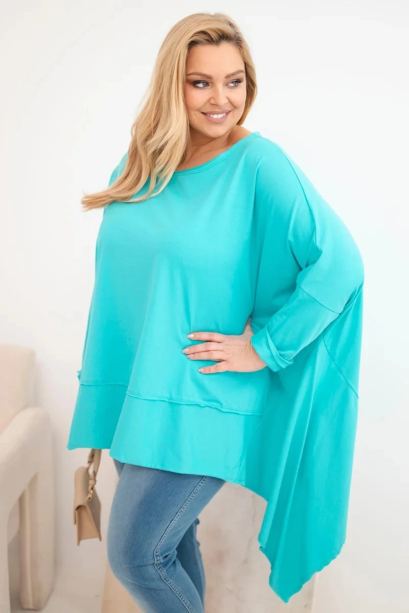 Dámská tunika Plus Size z bavlny s asymetrickým spodním lemem tyrkysová