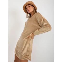 Béžové volné velurové šaty s kapsami RUE PARIS .