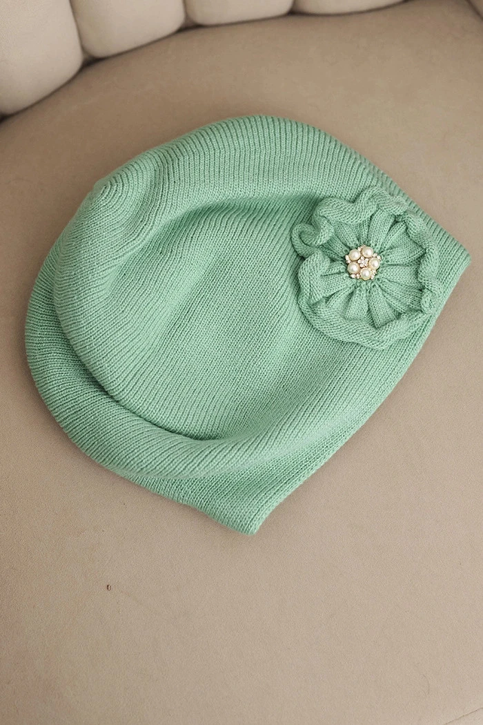 Elegantní dámská čepice s dekorativní květinou a aplikací z perliček, ideální pro ženy, které si cení stylu a pohodlí. Měkká pletenina zajišťuje komfort nošení a účinnou ochranu před chladem. Česká výroba zaručuje vysokou kvalitu zpracování.