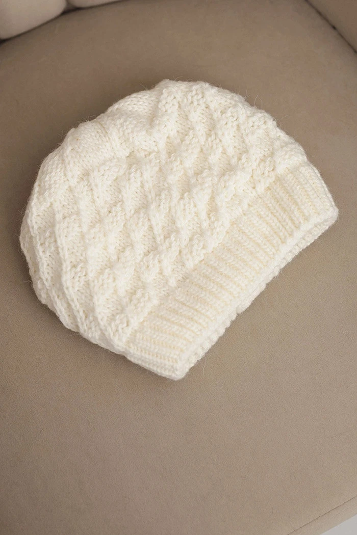 Stylová a teplá dámská čepice vyrobená z vysoce kvalitní příze s přídavkem vlny. Má dekorativní, krajkový vzor, který jí dodává jedinečný charakter, a elastická struktura zajišťuje, že se přizpůsobí každému tvaru hlavy.