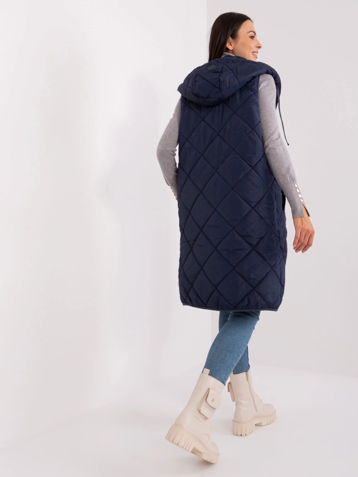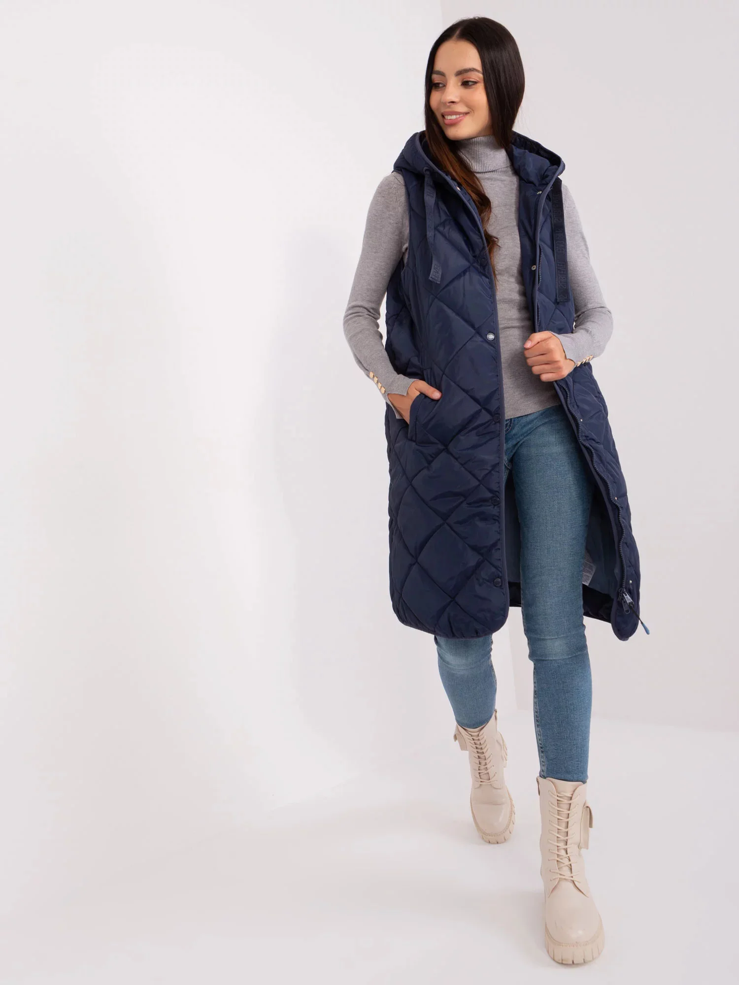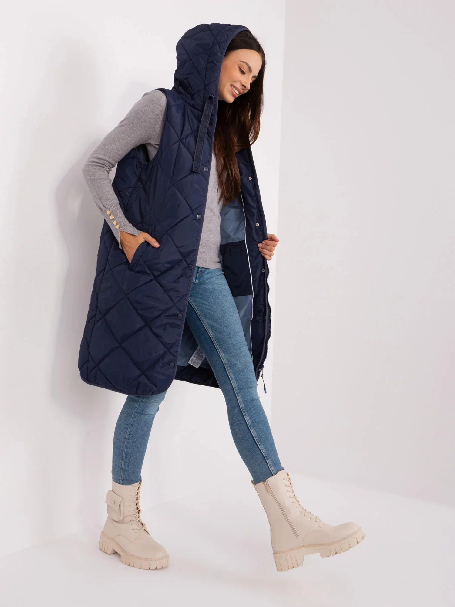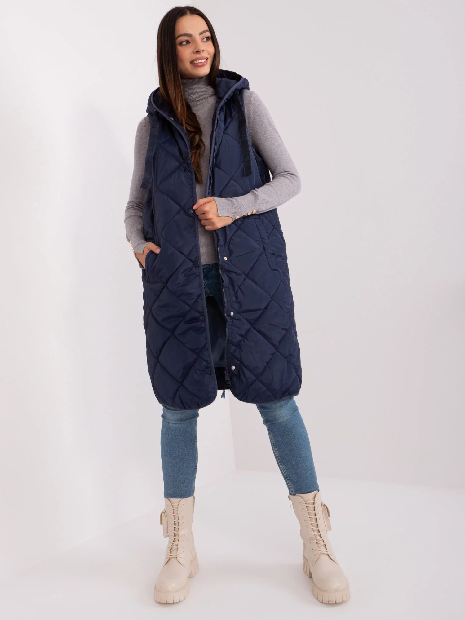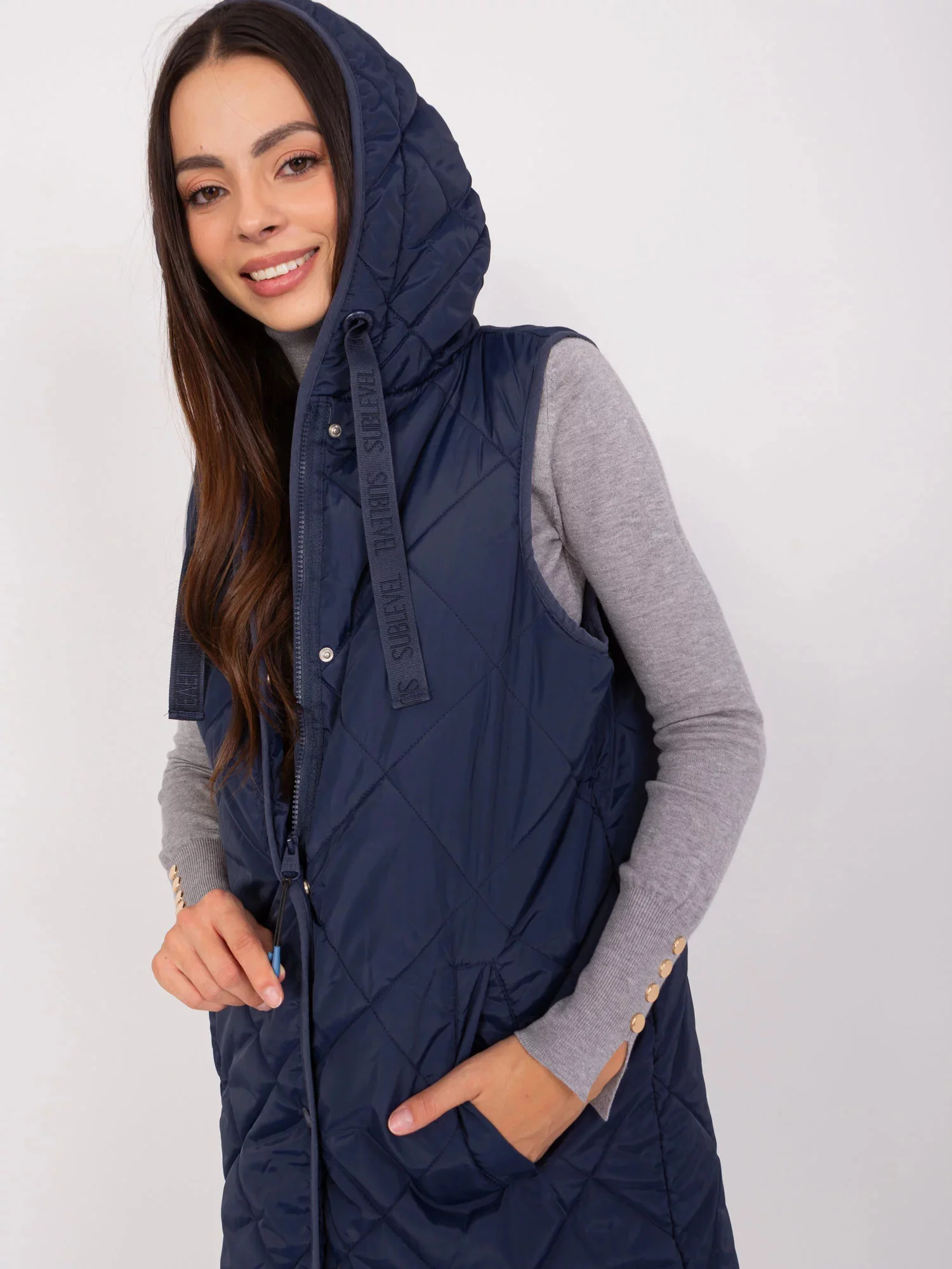 Námořnicky modrá prošívaná vesta se zapínáním SUBLEVEL .