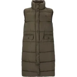 Tato dlouhá péřová vesta je vyrobena z vysoce kvalitního materiálu, který zajišťuje vynikající tepelnou izolaci a ochranu před větrem.