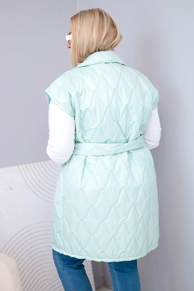 3. Dámská vesta Plus Size prošívaná s páskem a límcem mátová