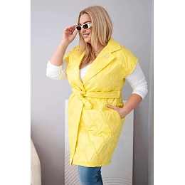 • Dámská vesta Plus Size prošívaná s páskem a límcem žlutá