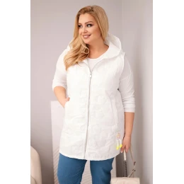 • Dámská vesta Plus Size s kapucí a květinovým prošíváním bílá