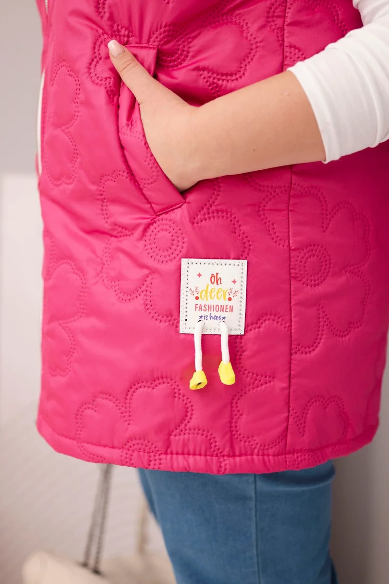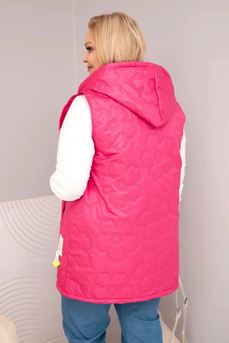 Dámská vesta Plus Size s kapucí a květinovým prošíváním fuchsie