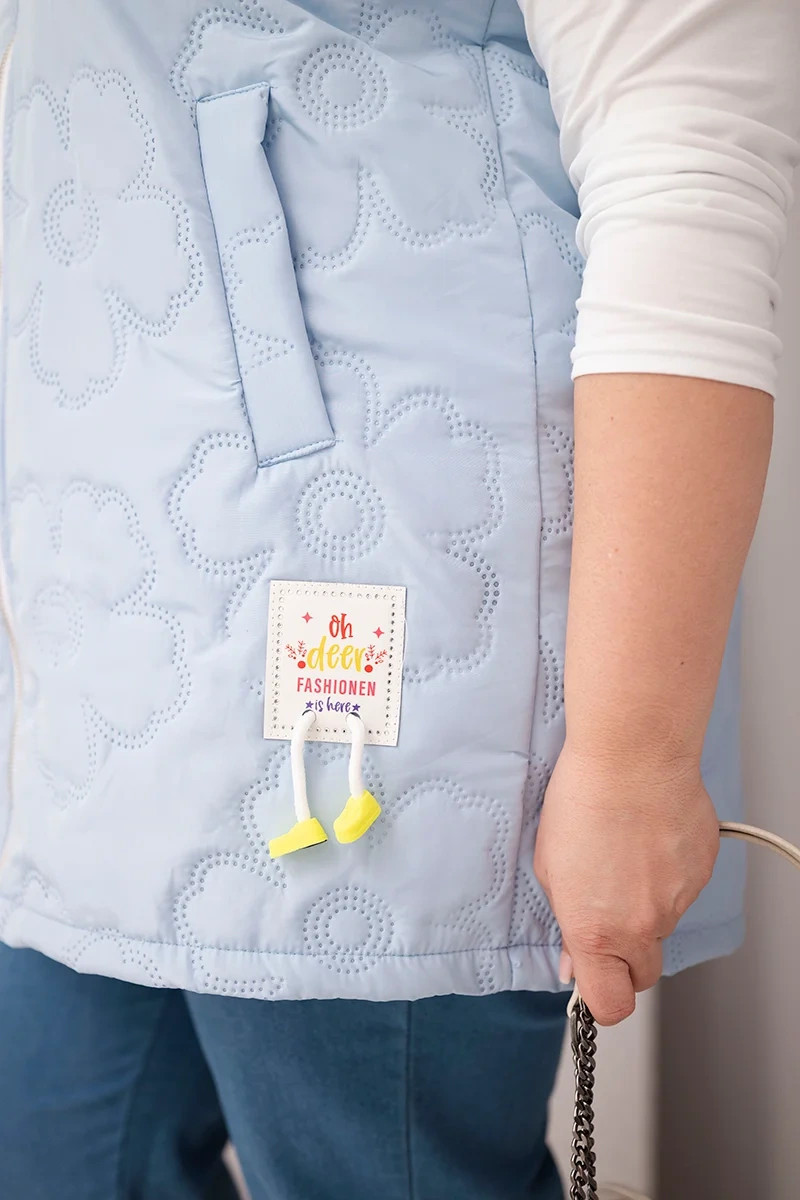• Dámská vesta Plus Size s kapucí a květinovým prošíváním modrá