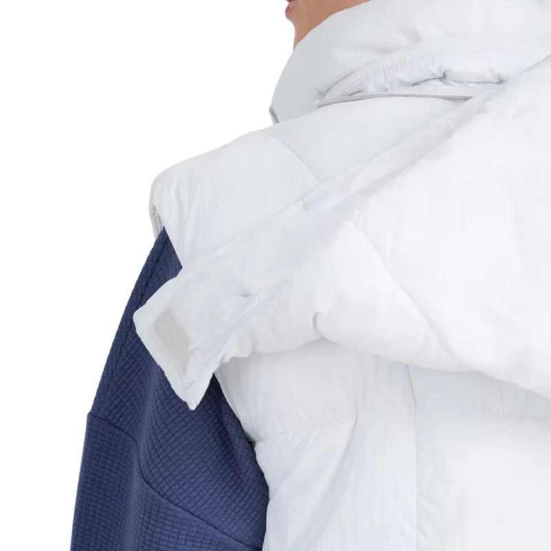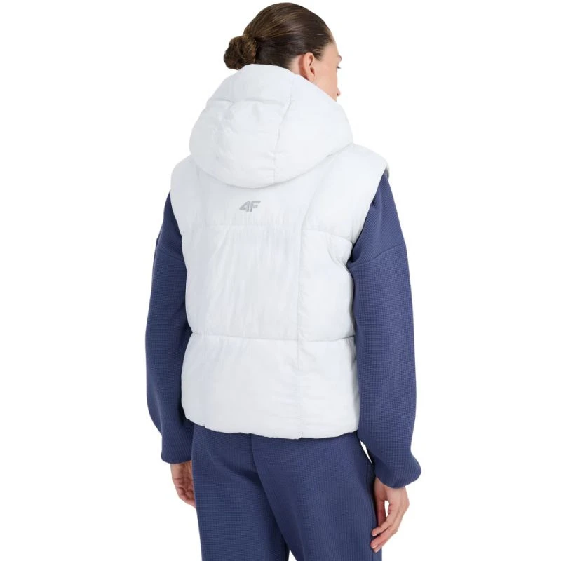 Kamizelka damska 4F F299 chłodny jasny szary 4FWAW25TVJAF299 27S Damski bezrękawnik 4F jest praktyczną częścią garderobą w okresie przejściowym, która oferuje niezwykłą wygodę. Dane techniczne:· Materiał główny: 100% poliester· Podszewka: 100% poliester· Wypełnienie: 100% poliester (puch syntetyczny)· Hydrofobowa powłoka zewnętrzna - chroni materiał przed wchłanianiem wilgoci i lekkim deszczem· Lekka ocieplina poliestrowa - zapewnia ciepło bez uczucia ciężkości, łatwa w pielęgnacji· Pikowane panele - dodają charakteru i równomiernie rozkładają ocieplinę· Odpinany kaptur z regulacją - możliwość dopasowania i noszenia w różnych warunkach· Stójka pod szyją -dodatkowo chroni przed chłodem i wiatrem· Zamek jednokierunkowy z przodu -łatwe i szybkie zakładanie oraz zdejmowanie kamizelki· 2 kieszenie boczne bez zapięcia - szybki dostęp do drobiazgów i wygodne miejsce na dłonie· Dół regulowany ściągaczem - tunelowy ściągacz ze stoperami pozwala dopasować obwód· Regularny krój - dopasowuje się do sylwetki bez uczucia ucisku