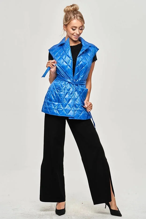 Vesta je v pase vypasovaná páskem. Model se zapíná patentkami a má dvě kapsy.