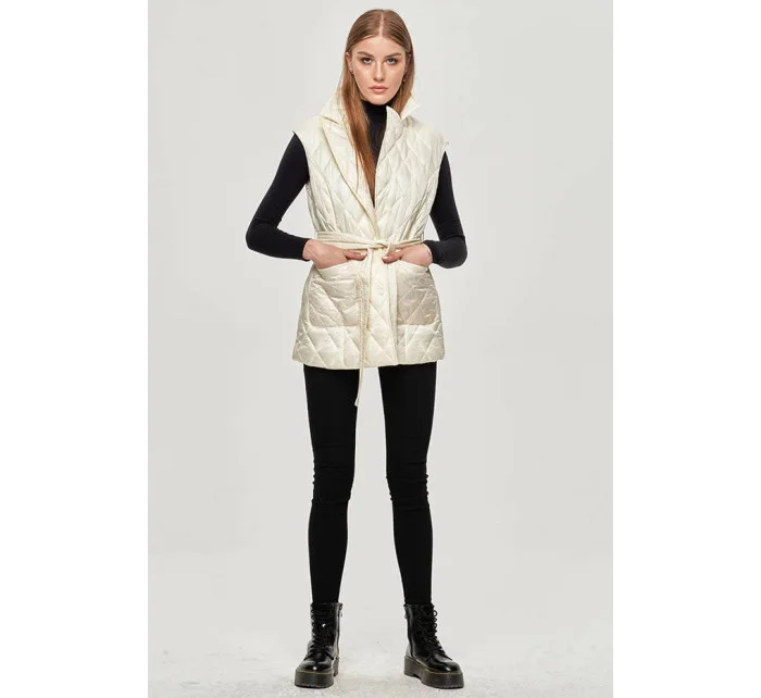 Dámská vesta v ecru barvě s límcem (JIN221)