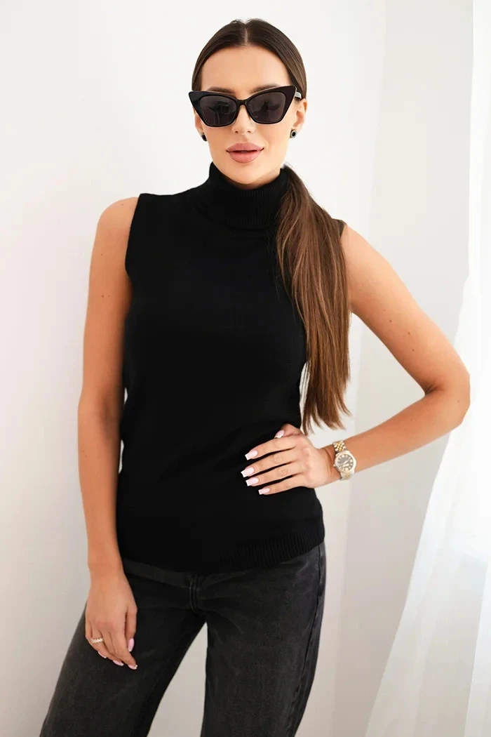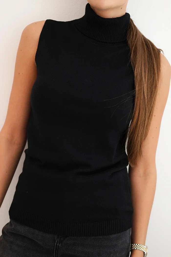 Rolák chrání před chladem a absence rukávů činí blůzu ideální pro nošení pod sako, kardigany nebo svetry. Je to univerzální návrh na každodenní nošení, do práce nebo na setkání s přáteli. Skvěle se kombinuje jak s kalhotami, tak se sukněmi.
