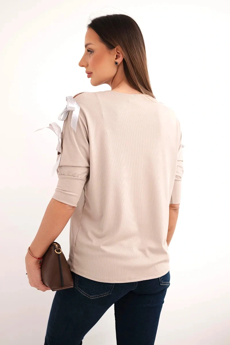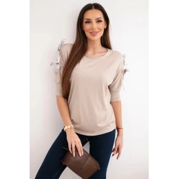Dámská viskózová blůza s ozdobnými model 22018672 béžová - K-Fashion