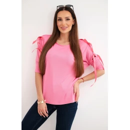 Dámská viskózová blůza s ozdobnými stužkami světle růžová